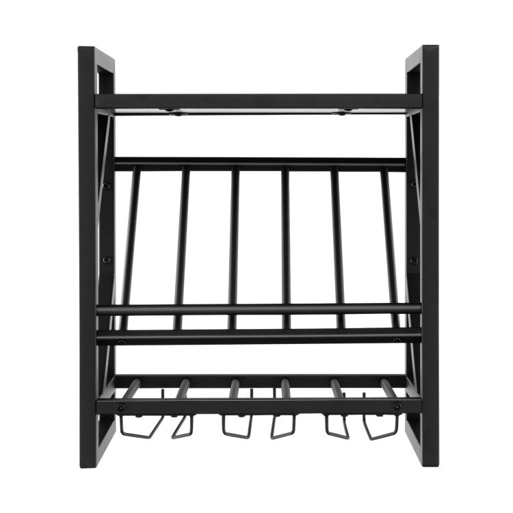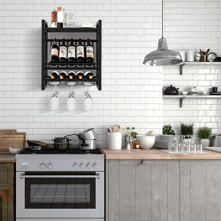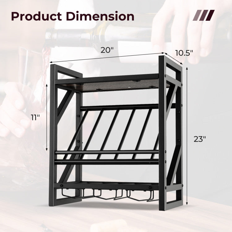 -2-tier wine bottle rack and 3 rows of stemware rack for 10 wine bottles and 12 glasses