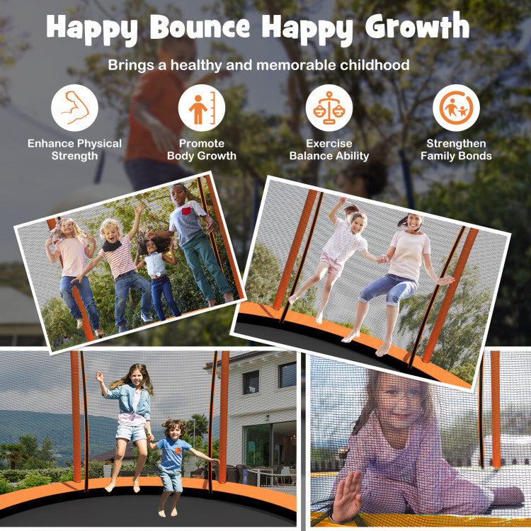 -High enclosure net with double-sided zipper keeps kids safe inside the trampoline