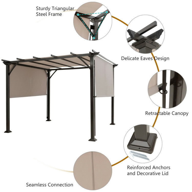 Besides, constructed by a reinforced steel frame with a powder-coated finish, the gazebo is rustproof and durable for long term use. More, the reinforced structure and 8 anchors ensure that it remains stable in windy conditions. Most importantly, you can flexibly adjust the retractable canopy on both sides according to your own preferences. The pergola gazebo in a stylish design matches different outdoor styles. You can use it for BBQs, parties, picnics with your family and friends. The pergola will give you the best shading experience!