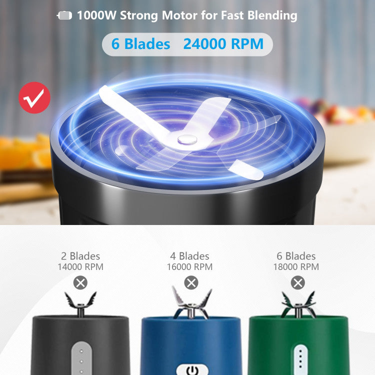 1000W motor, 6 blades and 2,4000 rpm blending speed enable you to freely make milk shake, juice, smoothie, baby food, etc. Made of tritan plastic, the BPA-free cups are safe for both kids and adults. And the cups have 2 different capacities (24 ounce and 12 ounce) for you to choose according to your needs. Besides, with travel lid and storage lid, you can take the homemade beverages wherever you like. ABS motor base and anti-slip foot pads ensure high stability and durability. Moreover, safety lock system helps you to tightly lock the cup onto the base. Overheat protection and overload protection add more security. Additionally, it’s easy to install and clean.