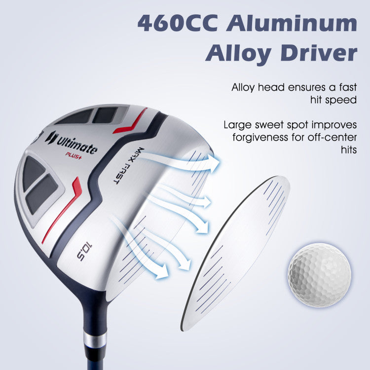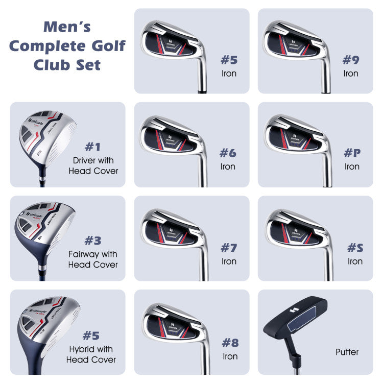 -Our golf set includes #1 driver, #3 fairway, #5 hybrid, #5 & #6 & #7 & #8 & #9 & #P & #S stainless steel irons and zinc alloy head putter