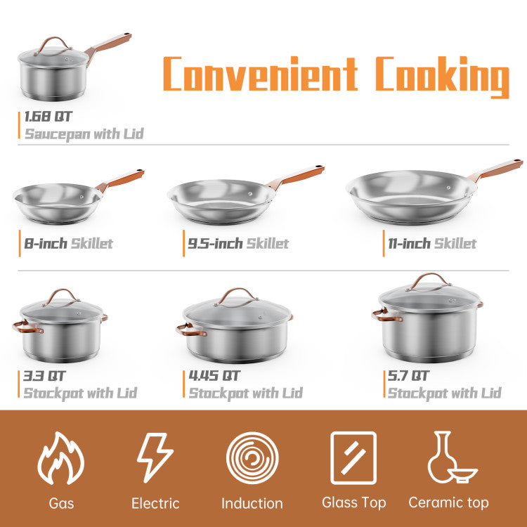Cook to your heart's content with this 11 pcs stainless steel cookware!