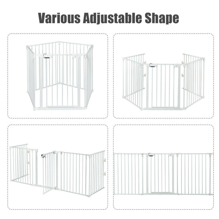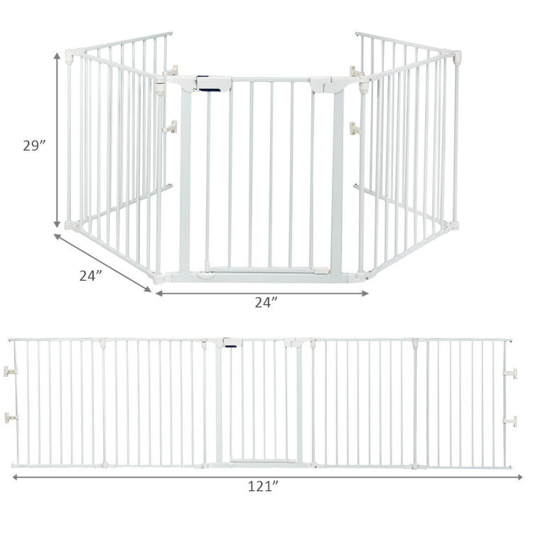 Crafted from heavy-duty steel with exclusive finish, this gate has sturdy and durable structure for long time service. Designed with a walk-through door with safety lock, it provides ultimate security and easy to open with one hand. It has 5 panels that can be made into any shape you want. This multifunctional gate is perfect for any indoor environment, such as doorway, hallway and grills. You can set it freely on floor or mounted to the wall in order to create space where the baby or pet can play safely by themselves.