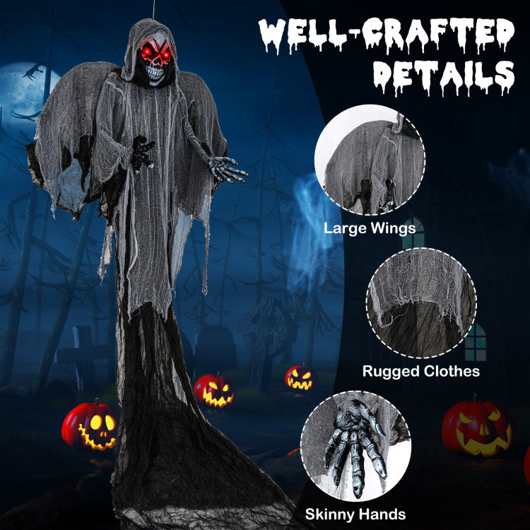 -Enormous 12.1 ft hanging skeleton ghost with torn wings