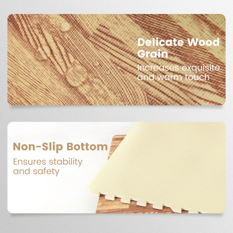 -Package includes 12 tiles wood grain floor mats and 24 end borders