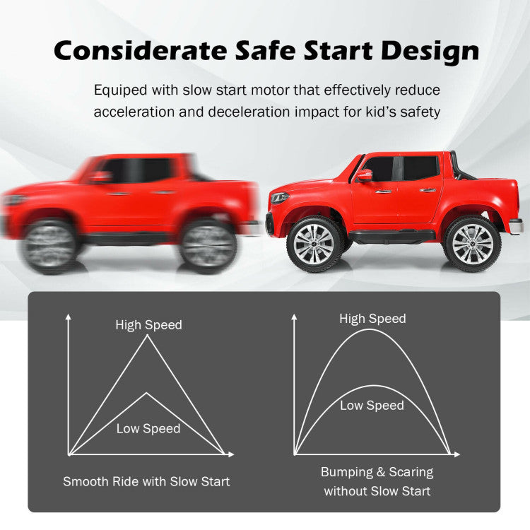 This car has the same cool appearance as the Mercedes-Benz, and it features different entertainment functions, such as FM radio, bright LED lights, MP3 multifunctional player, built-in music, voltage display, USB and AUX connectors, volume adjustment, and the horn.