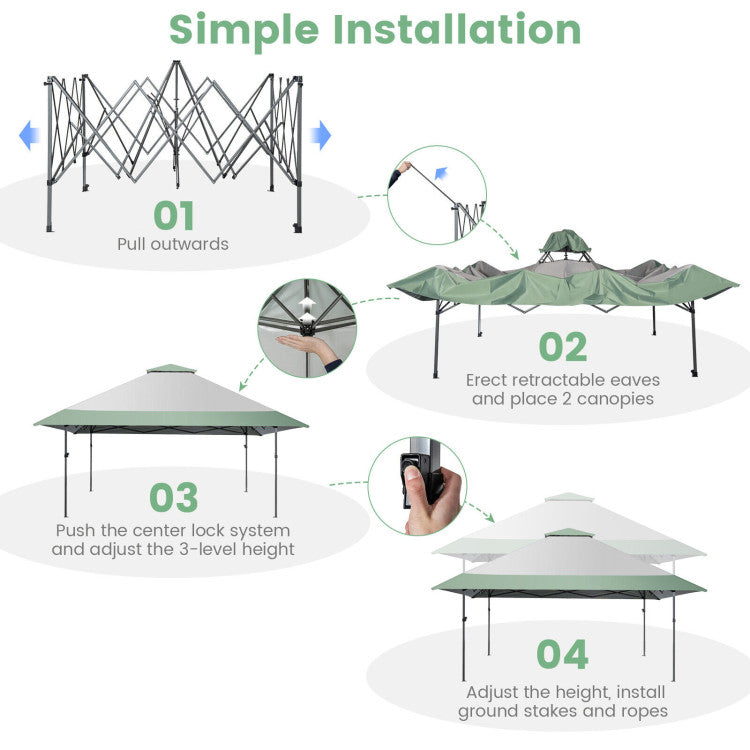 -Including 1 x Steel Frame, 2 x Top Canopies, 1 x Wheeled Bag, 8 x Ground Stakes, 4 x Fasten Ropes, 1 x User Guide