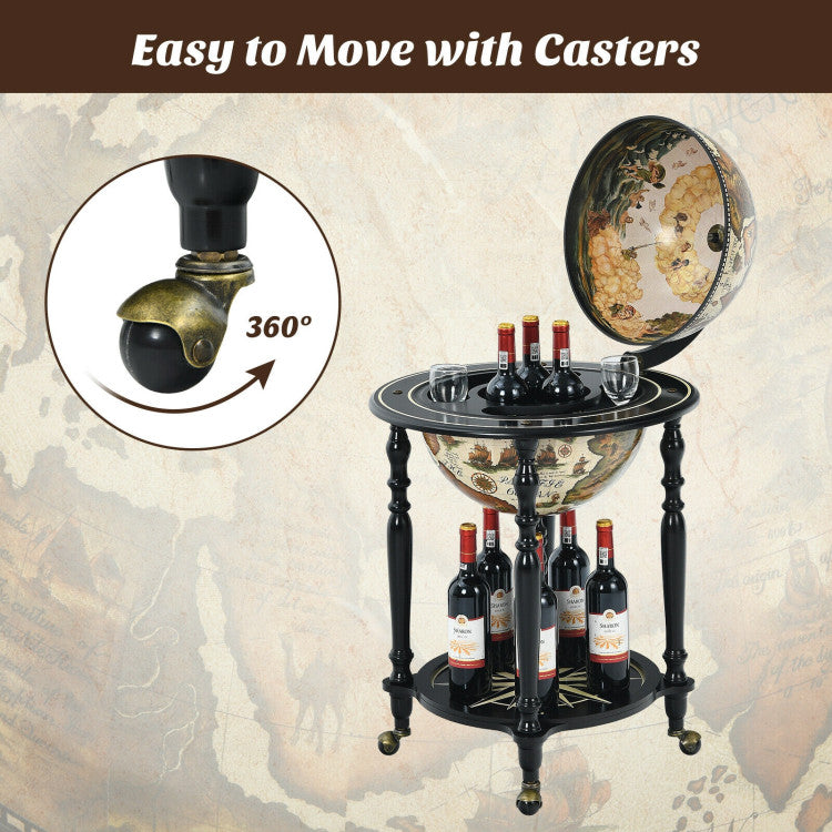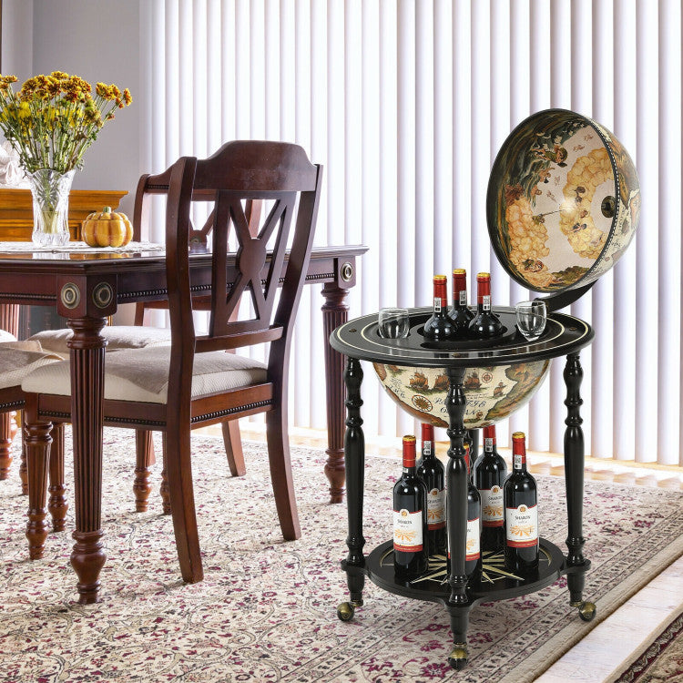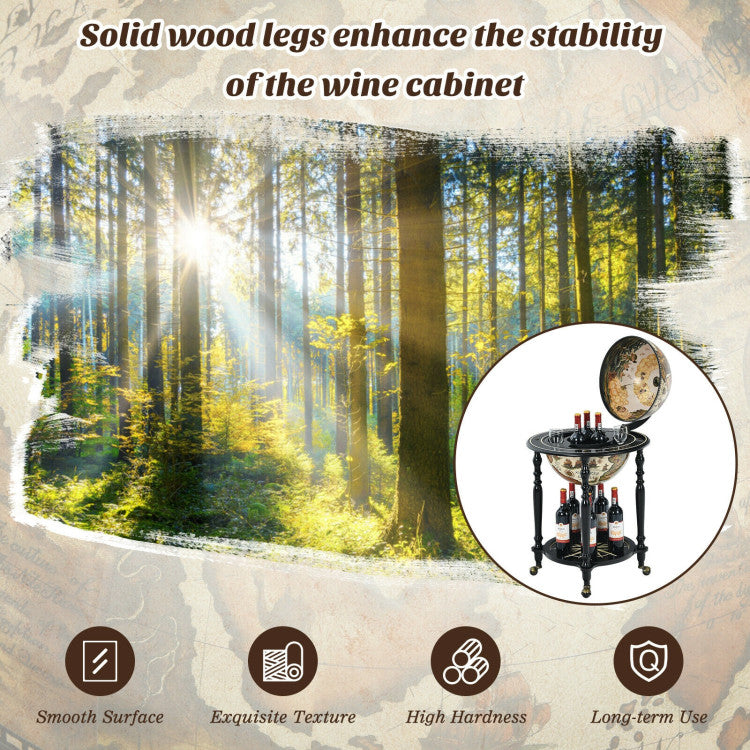 Are you still looking for a satisfactory wine cabinet for your home? Made of selected MDF and structured by 4 solid wood legs, it is durable and stable enough for daily use. The inner cabinet and open bottom shelf provide enough storage space for wine bottles and glasses. Unique earth shape design prevents cherished spirits and stemware from damages and also adds highlight to your home. Besides, delicate nautical chart surface and vintage style make it suitable for any space, such as dining room, living room, etc. Don't hesitate to take it home!