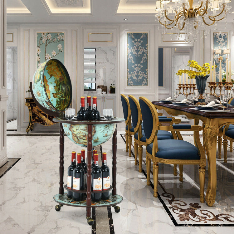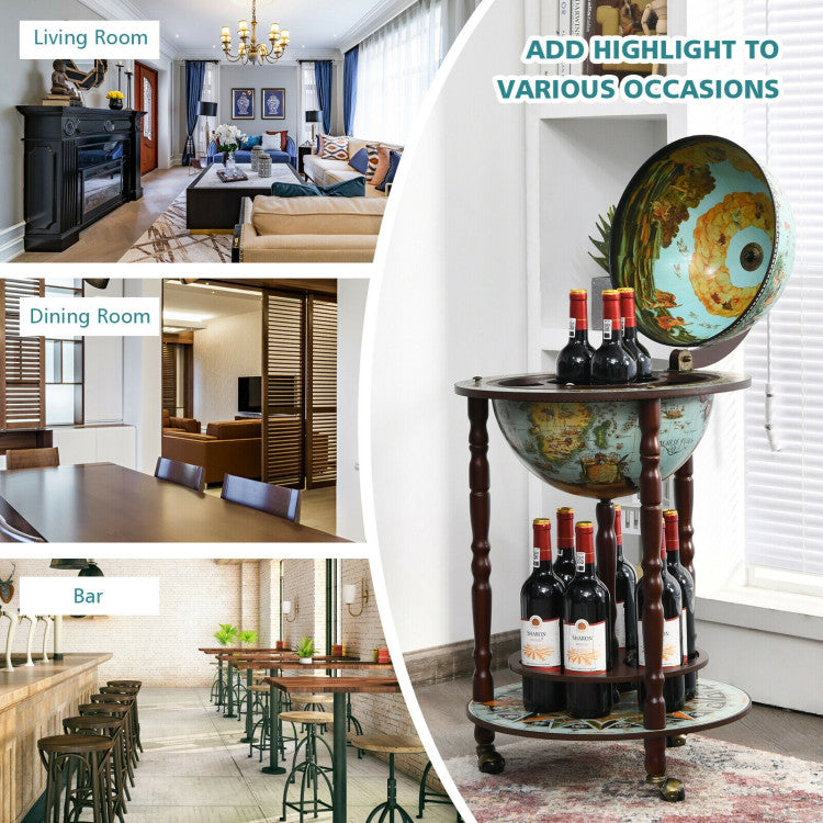 Do you want to have a large capacity wine cabinet with bottom liquor bottle shelf? Just take our globe wine bar stand home.