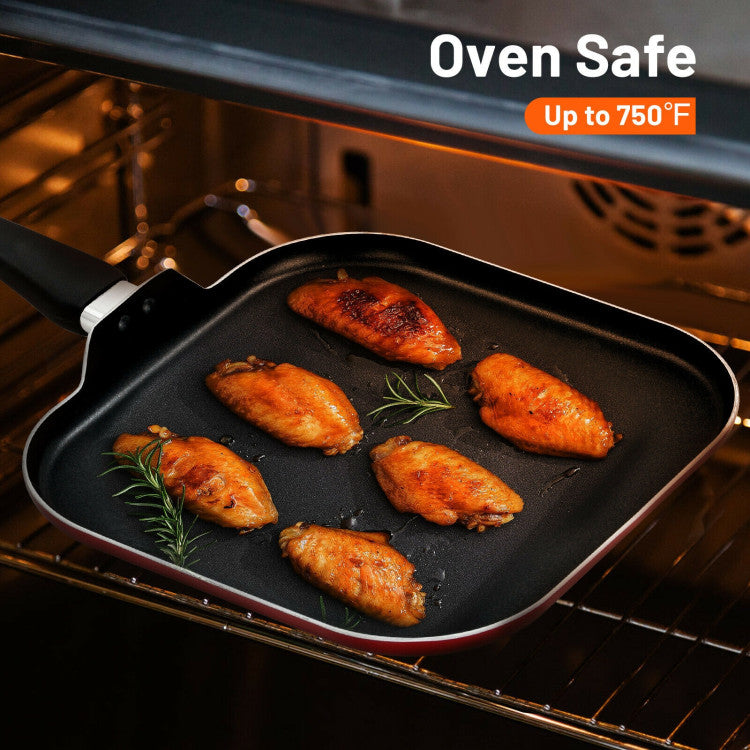 | Square griddle size | 18" x 10" x 0.5" (L x W x H) |