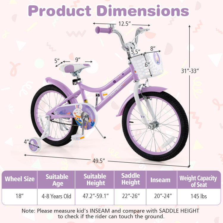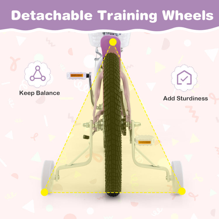 -2 removable training wheels allow kids to learn to ride and keep balance