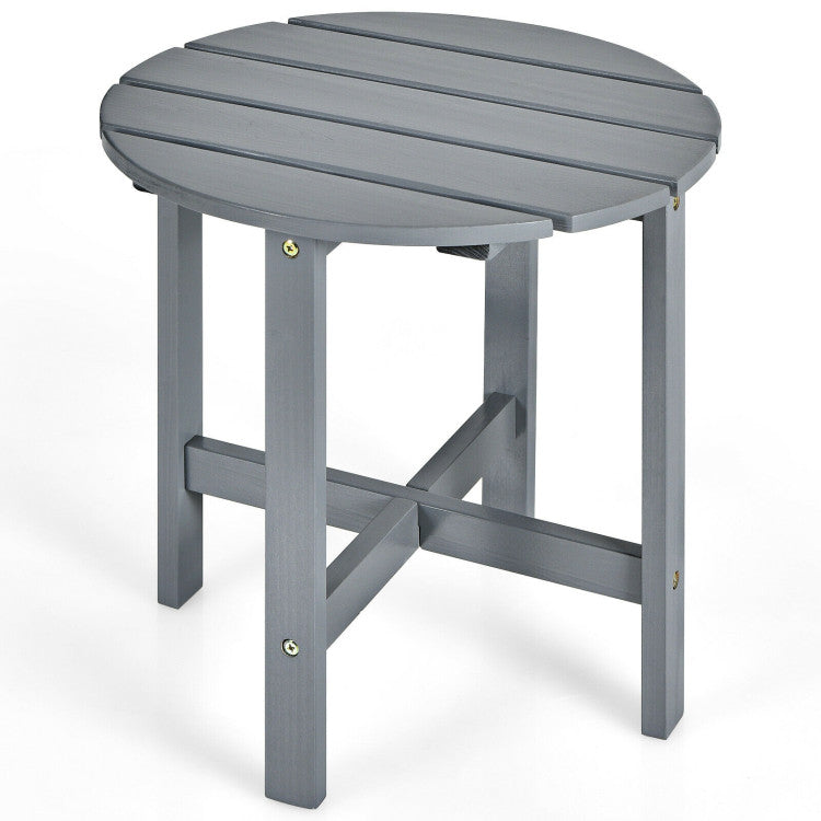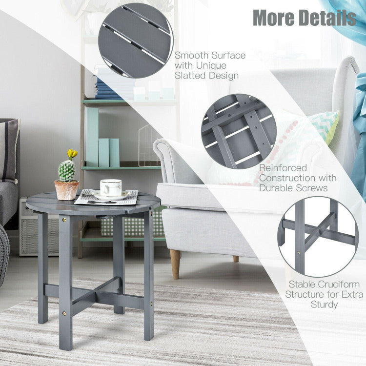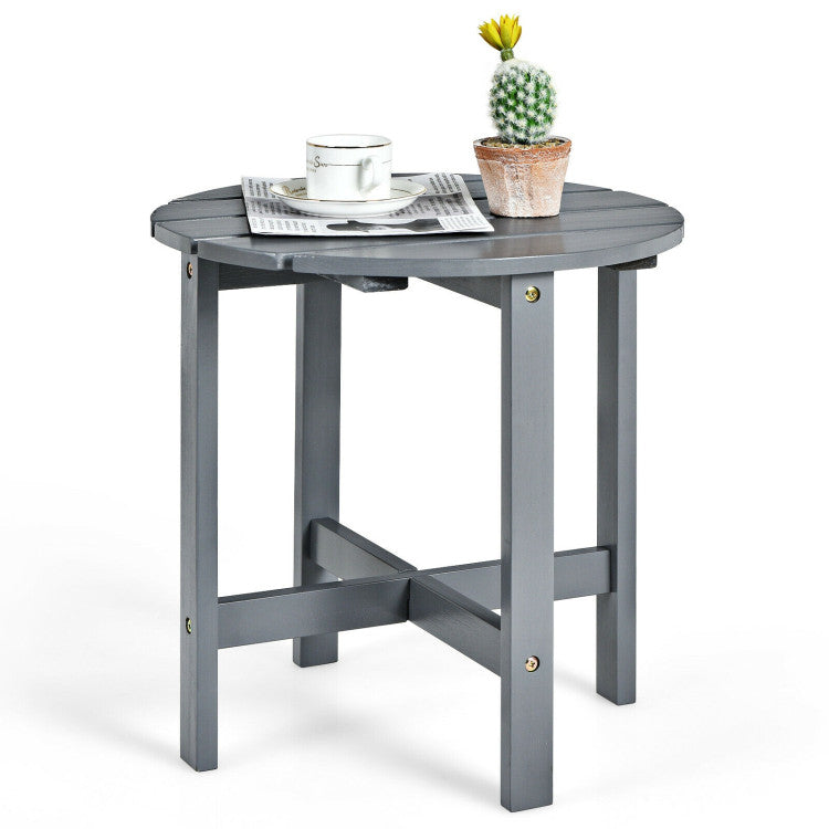 This round wooden coffee table is a perfect addition to your outdoor chairs.