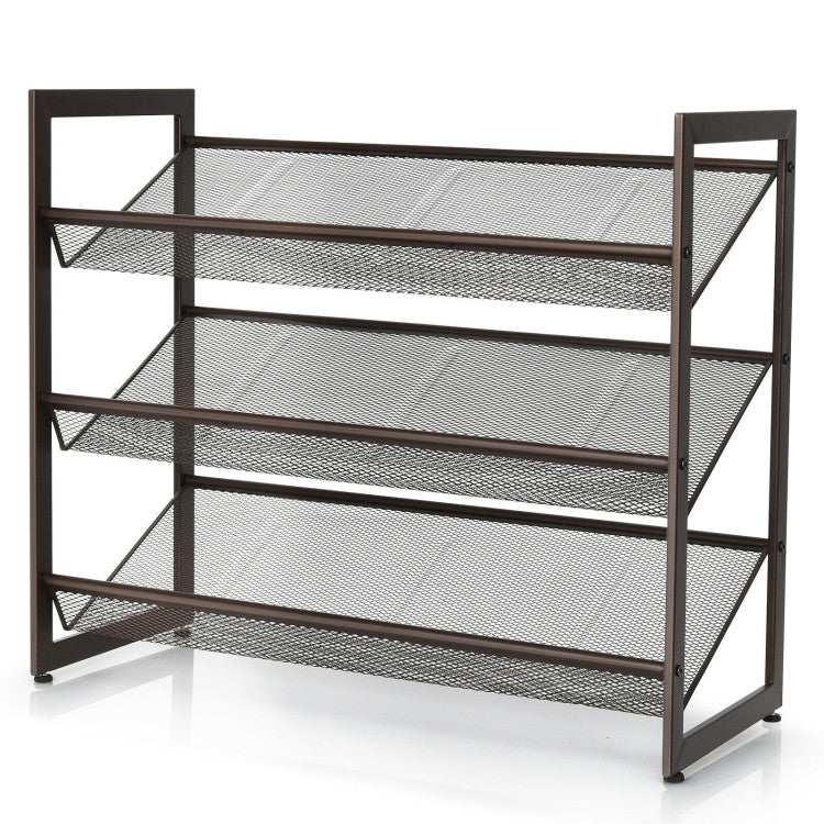 The nicest thing about this shore storage organizer is that shelves can be installed angled or flat or, even better, a mixture of both, not to mention it iseasy to assemble and adjust. Mesh shelves are great for airflow and friendly to high heels and stilettos. Containing 4 layers and yet still compact enough to fit into your closet and other narrowed areas, this shoe storage shelf can accommodate at least 16 pairs of shoes. The steel frame makes sure this neat shoe organizer is stable and durable in use.