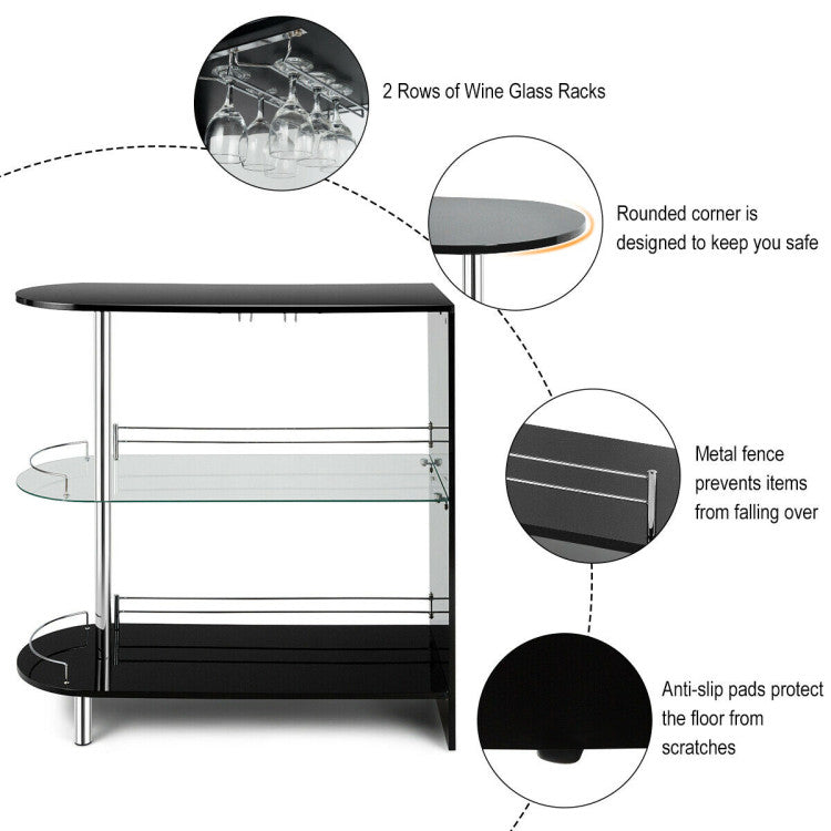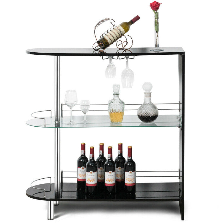 Equipped with 2 glass holders and extra two shelves, this unit provides convenient storage space for all of your needs. Made of a sturdy metal frame and premium tempered glass, it is durable and sturdy enough to hold your items. The elegant look makes it match well with any interior decoration. Apart from adding a unique modern touch to your room, it also creates a relaxing atmosphere for drinking with your friends.