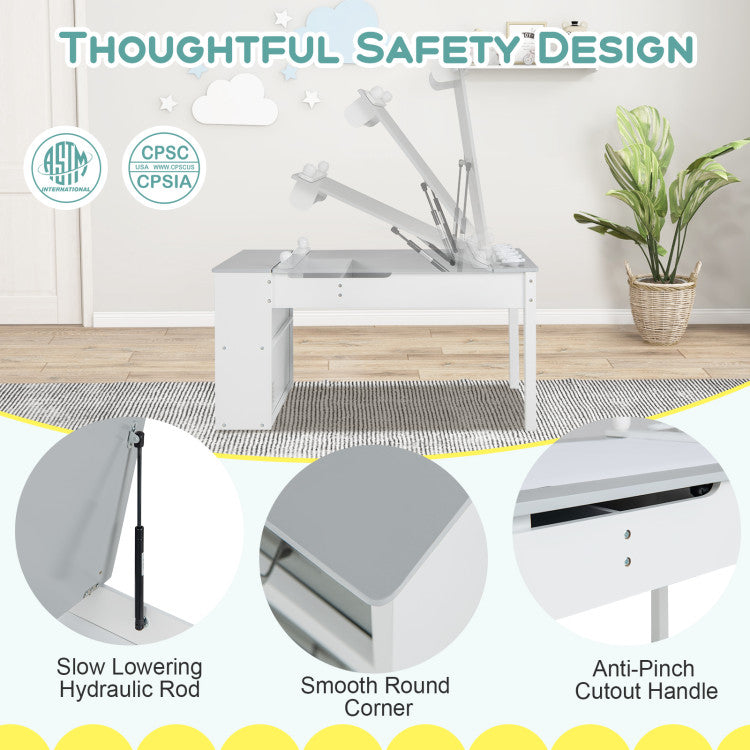 -Large storage space under the desktop for kids daily essentials