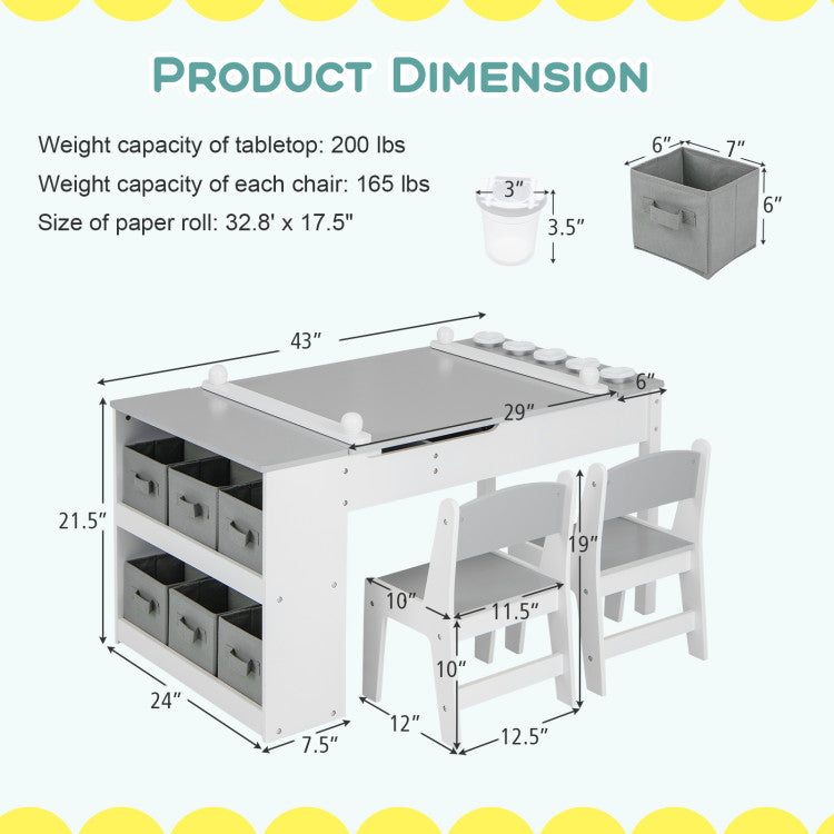 -Includes a table, 2 ergonomic chairs, a paper roll and 5 paint cups