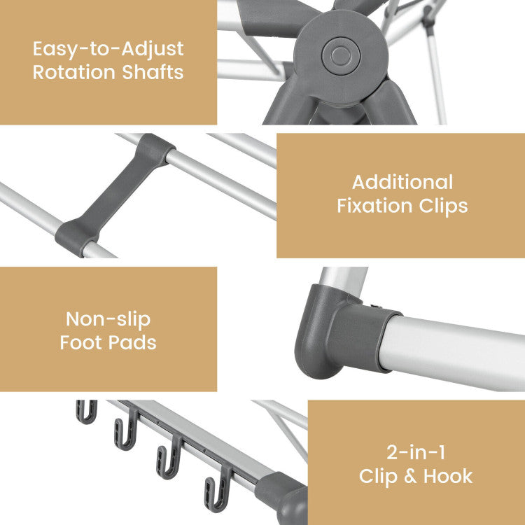 -The flexible rotation shafts make it easy to open and fold the drying rack