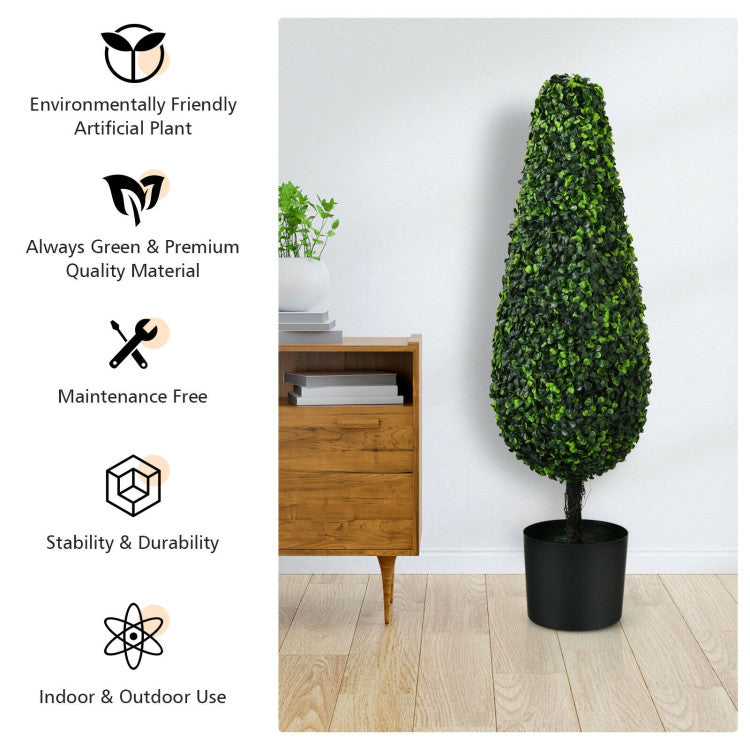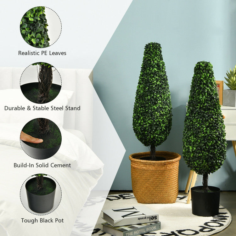 These plump and lush tower-style artificial topiary trees provide a truly lifelike appearance and do not require any maintenance, watering, sunlight, or pruning.