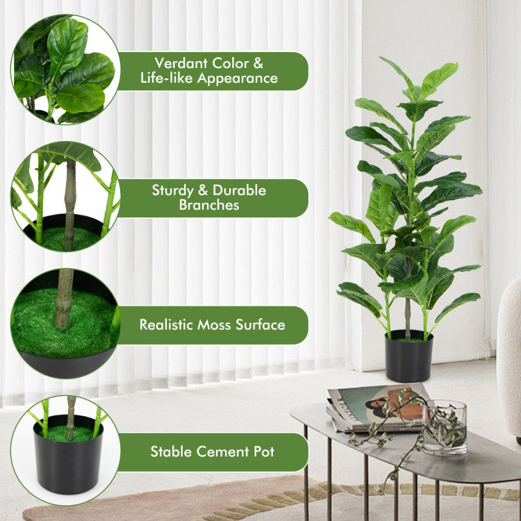 This 2-pack artificial fiddle leaf fig tree is the ideal choice for decoration,which can be a highlight of your living space while requiring no maintenance. There is no need to spend time and effort on watering,pruning,or fertilizing,it would stay evergreen and vibrant throughout the seasons. Comes with 100/40/32 large fiddle leaves,the faux plant showcases a full and luxurious appearance. In addition,the leaves are made of premium PEVA material that is not only non-allergic and safe to use,but also sturdy and not easy to break,ensuring long-time use.