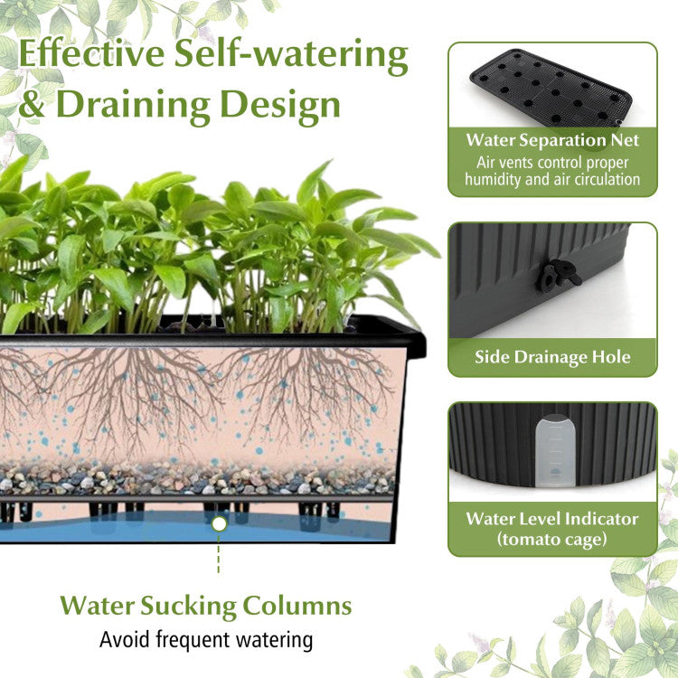 -Water sucking column and water separation net ensure effective self-watering and drainage design