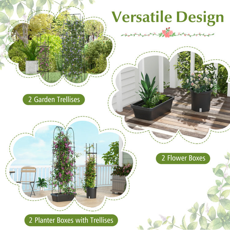 -Versatile as planter boxes with trellises, 2 garden trellises or 2 flower boxes