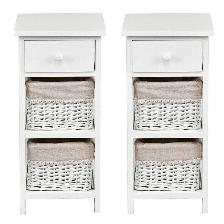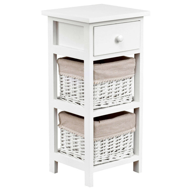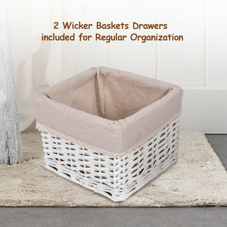 -Two Wicker Rattan Baskets And A Storage Drawer To Store Things