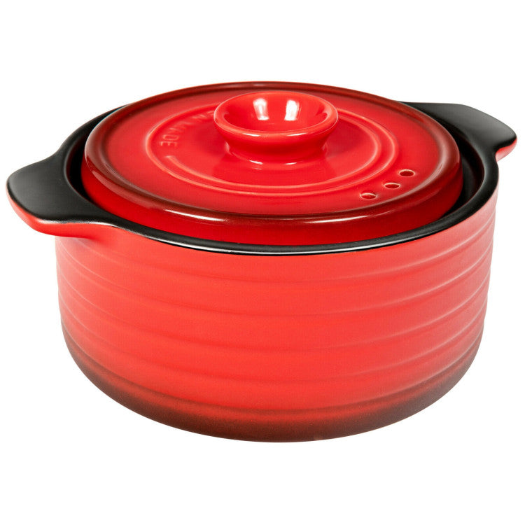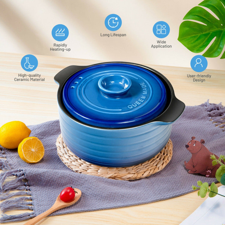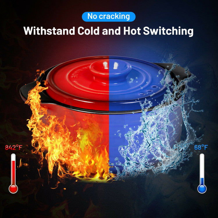 Premium ceramic material allows the pot to withstand high temperatures up to 842°F without breaking or leaking. Plus, heat is distributed evenly through the pot to minimize heat loss. Ceramics also offers superior heat retention to keep food warm and keep the original flavor. The pot set is compatible with a stove and ceramic hot plate, perfect for kitchen use. Besides, two pots are of different sizes, to meet your different needs. Each lid is designed with bumps to accelerate inner circulation and make food more delicious and juicy.