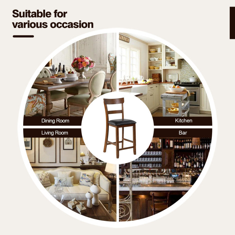 The stable construction makes it support up to 353 lbs, suitable for both men and women. With the aim of offering maximum comfort, the gently curved backrest perfectly fits the line of spine and back, which relieves the stress for a more comfortable position. It's also worth mentioning that the chair has a soft cushion upholstered in PVC leather. Foam-padded cushion comes with high resilience, which serves to softly support your hip. And the skin-friendly PVC leather delivers a smooth touch, also easy to clean. Plus, the counter height designed with elegant and minimalist style can easily blend in with any decor style. The set of counter height chairs certainly will exceed your expectations.