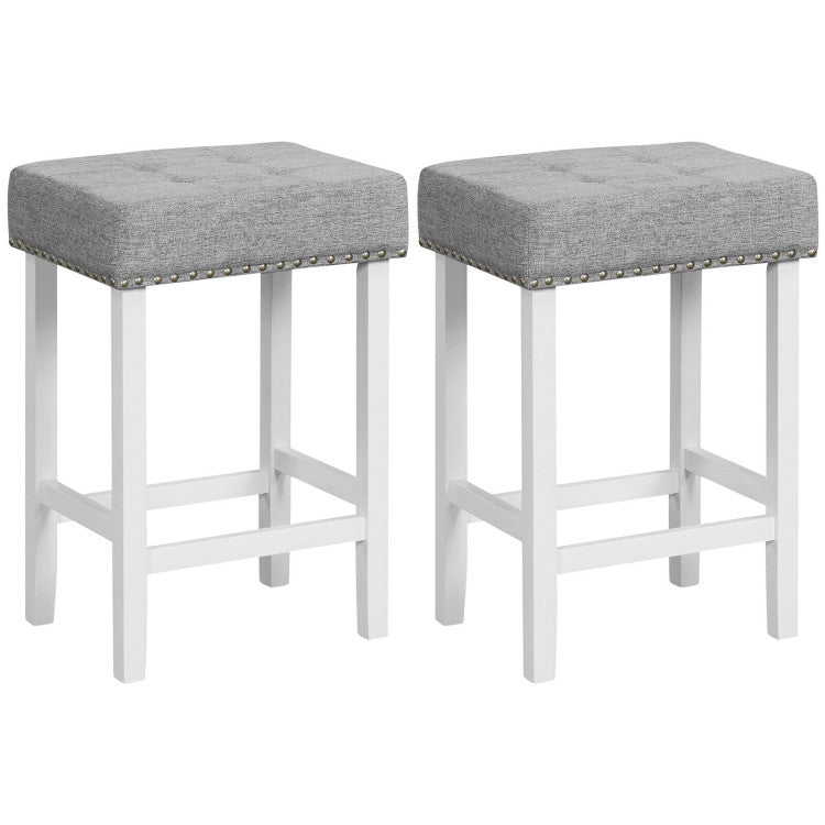 -Modern bar stool set of 2 with unique tufted design and nailhead trim decoration