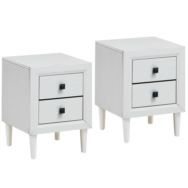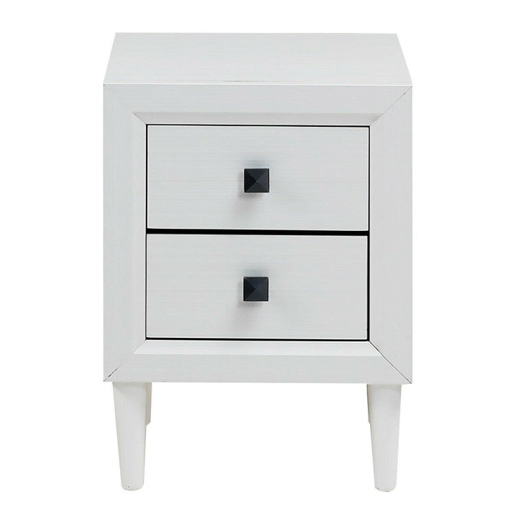 It features two drawers and two exquisite handles. On the top, you can place some of your decors like photo frame or vase. In the drawer, you will have additional storage space to put some small articles and they can be easily to find when you need them. The nightstand is mostly made of high-quality MDF. Therefore, the entire structure of this nightstand remains very solid and durable. And even more, it has 4 durable feet made of rubber wood which also ensures stability. This nightstand is not only conformity with your room style but decor your room. And you can put it in the corner or other small place to use the space in an efficient way.