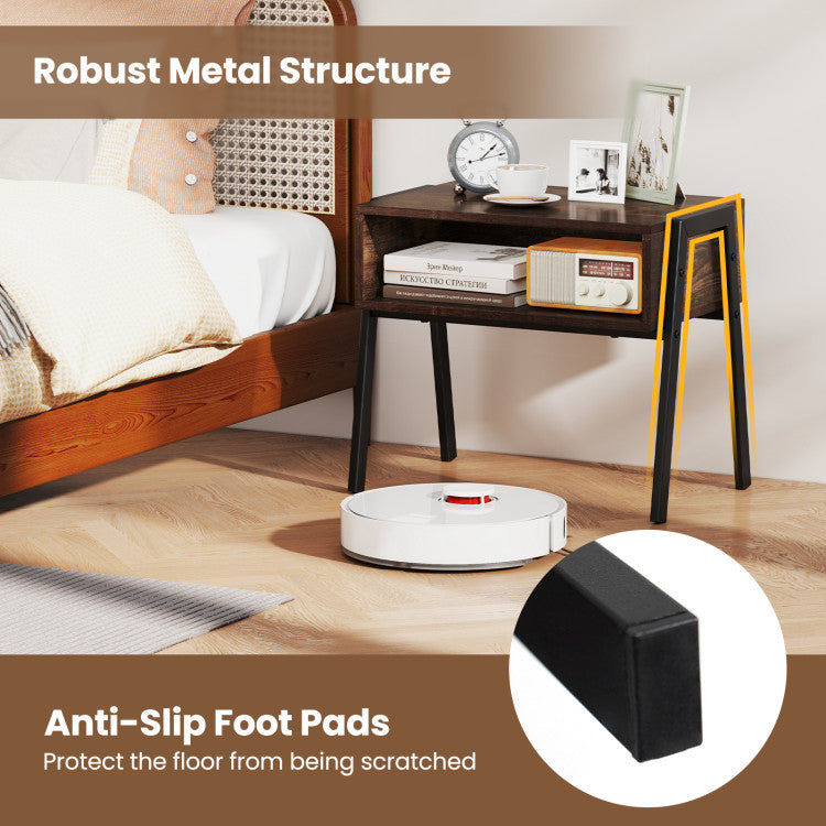 There are large open storage compartments and specious tabletops that can hold various items without wobbling, such as your book collection, glasses, a cup of water, and a bedside lamp. Using a thick board and high-quality steel frame, this side table is stable and strong for long-term use. Meanwhile, the maximum weight can be up to 66lbs and it includes non-slip mats to protect the floor from scratches... What's more, the simple design makes it suitable to be placed on various home or office occasions, used for snack tables, coffee tables, side tables, and bedside tables.