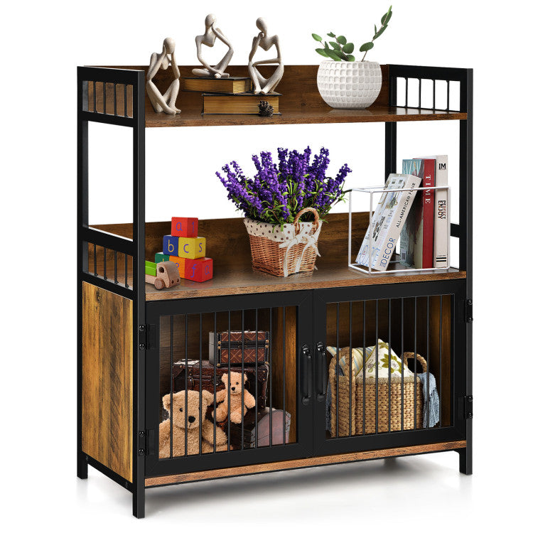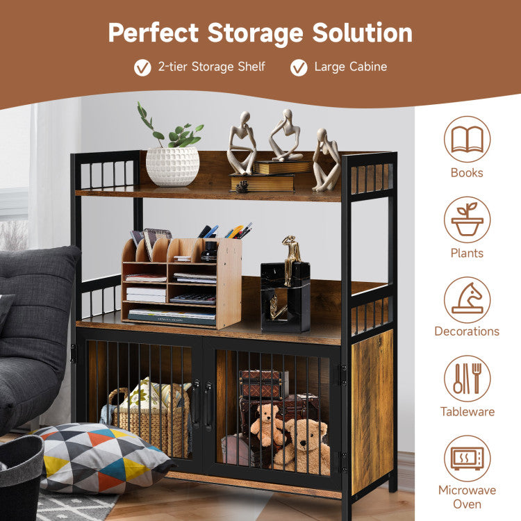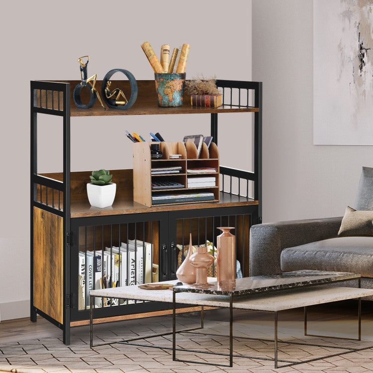 Designed with 2-tier open shelf and 2 enclosed cabinets, the microwave oven stand provides you with ideal storage space to hold items in a neat and orderly way. Moreover, the raised baffle can effectively prevent items from falling. In addition, the combination of durable MDF and solid metal frame promises longer service life. With an attractive industrial style, this storage cabinet is suitable for various place, including living room, kitchen, dining room, etc.