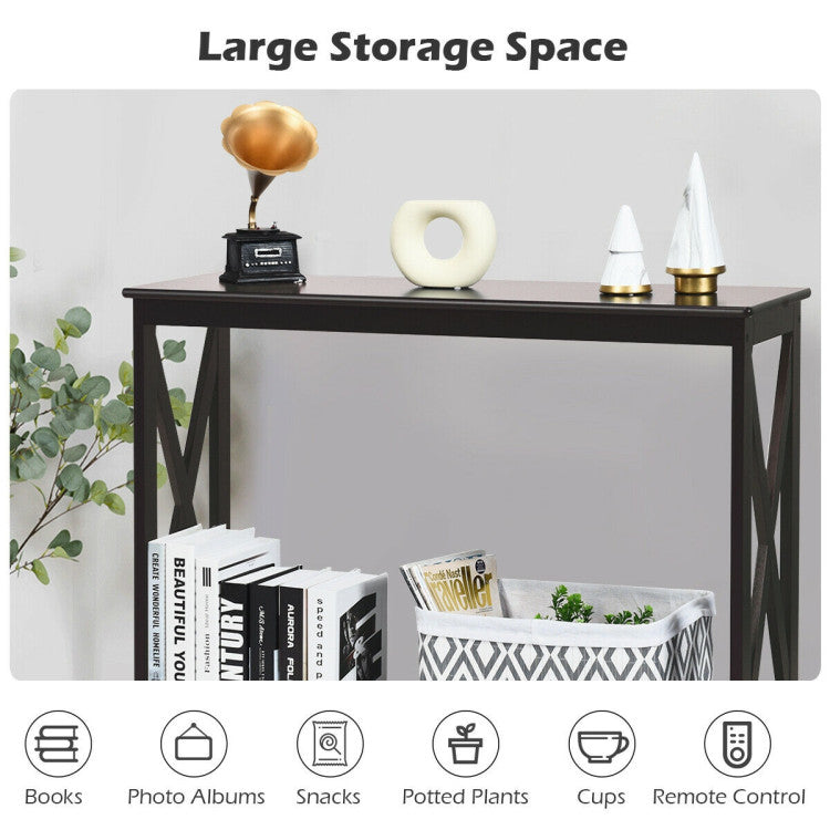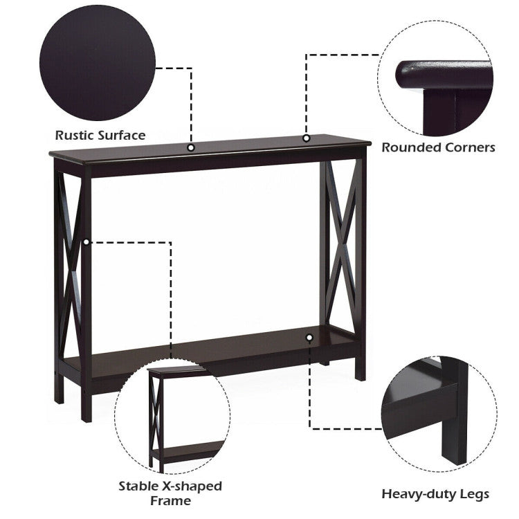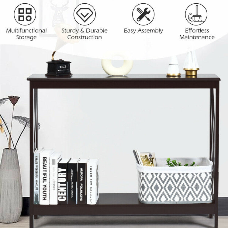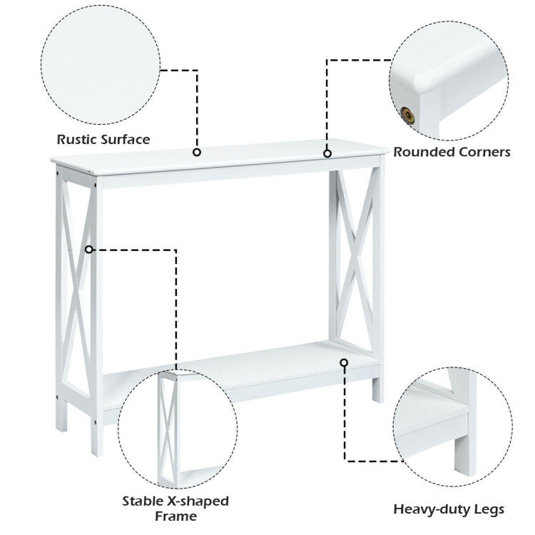 Crafted from high-quality P2 MDF, this table is sturdy and durable ensuring it will grace your home for many years, providing not only storage but a flourish of style. The X-shaped structures on both sides ensure overall stability so you can store items with confidence. The open shelf provides additional storage space for books, toys, crafts, etc. The smooth surface is easy to clean so that you can wipe it effortlessly with a soft, damp cloth when there is dust on it. A perfect combination of aesthetics and practicality, this console table can’t be missed!
