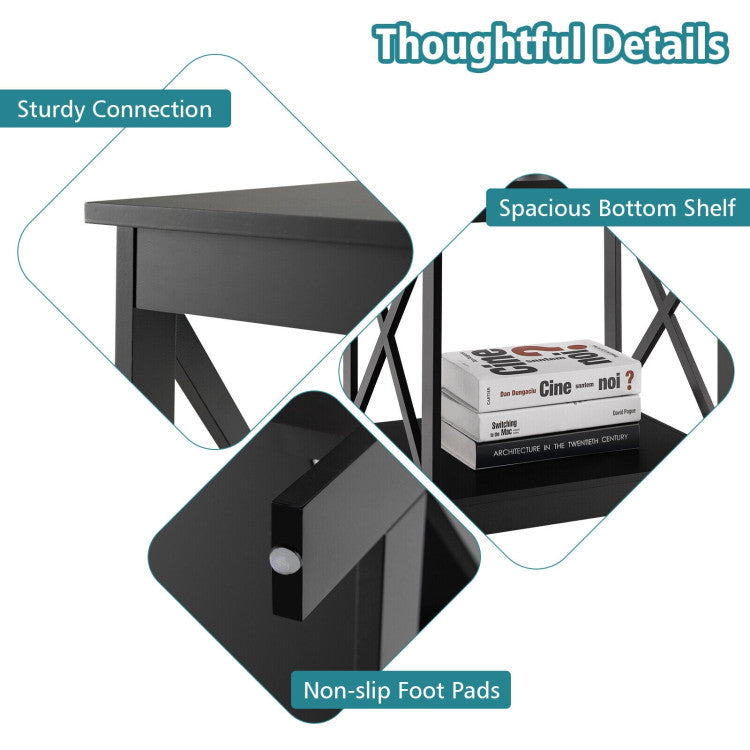 The combination of a wide tabletop and open shelf brings much convenience to holding a variety of daily items in one place. Thick MDF has the characteristics of sturdiness and durability, thus promising a longer service life. More, the unique X-shape design and four solid support legs further enhance its stability. The side table with chic style and elegant appearance add a highlight to your home, making it ideal for the living room, bedroom, etc.