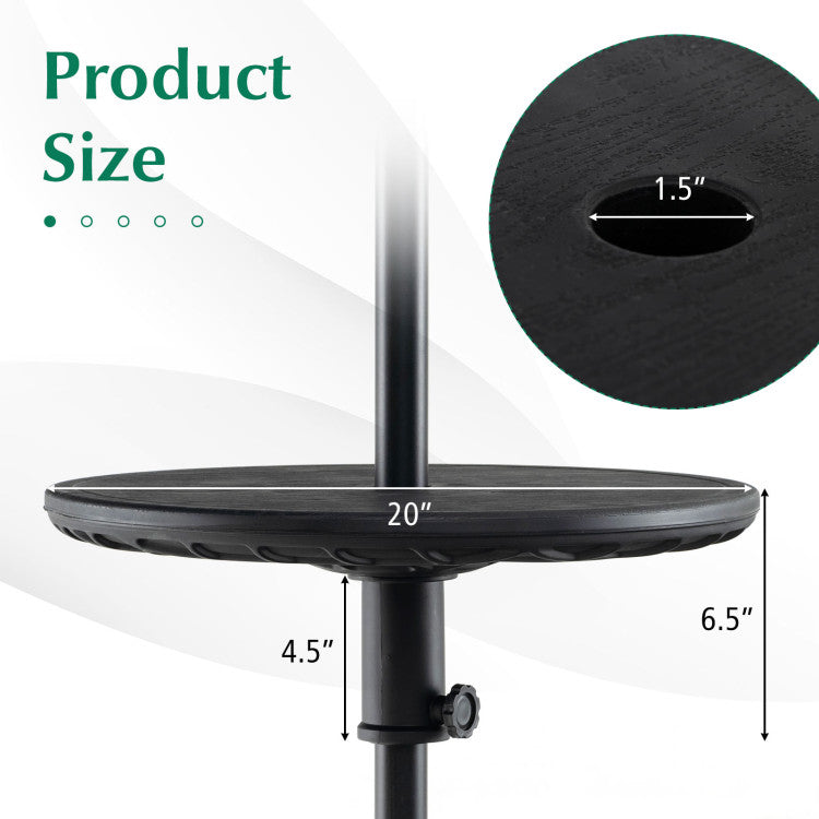 Wide and Height Adjustable Design: The 20" umbrella table provides sufficient space to keep your drinks, phone and snacks in place. Equipped with an adaptor to tighten the umbrella, the patio umbrella tray fits the patio umbrella with 1.5" pole. In addition, you can set the round table tray at any height you prefer. Sturdy and Durable Construction: The portable round table top is made of premium PE, which is waterproof, anti-wear, crack-resistant to withstand harsh conditions all year round. Besides, it is easy to clean by wiping the table tray with wet cloth. And the unique diamond-shaped design will ensure distributed force to avoid deformation. Portable and Lightweight Design: The beach umbrella table is lightweight for easy portability. Weighing only 3.5 lbs, you can effortlessly carry it to anywhere you want. Elegant Outdoor Addition: Boasting simulated wood grain on the surface, the adjustable umbrella table can seamlessly complement with your outdoor setting, such as backyard, poolside, beach, garden and patio. Hassle-free Assembly: With a clear instruction manual and simple structure, setting up the outdoor umbrella table tray is a breeze for you. And no additional tools are required for assembly, allowing you to start using your table immediately.