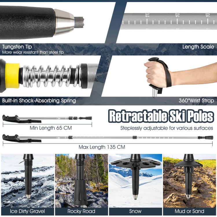-Includes ski poles, mud baskets, snow baskets, storage clip and carry bag