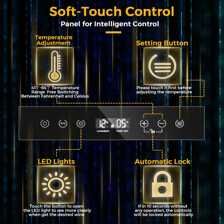 The most suitable temperature for wine storage is between 44?- 64?. This wine cooler can provide a wider temperature range of 41?- 64?, which will make it perfect to protect your wines and maintain their tastes. And the chamber temperature will not be affected by the environment, thanks to its anti-UV darkened double glass door. In addition, the operation is very simple for home use with a clear digital control panel.