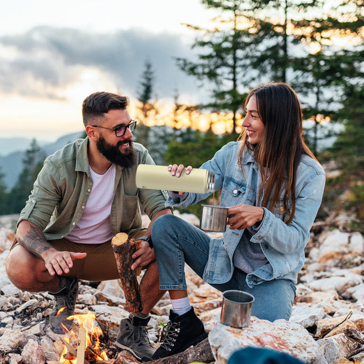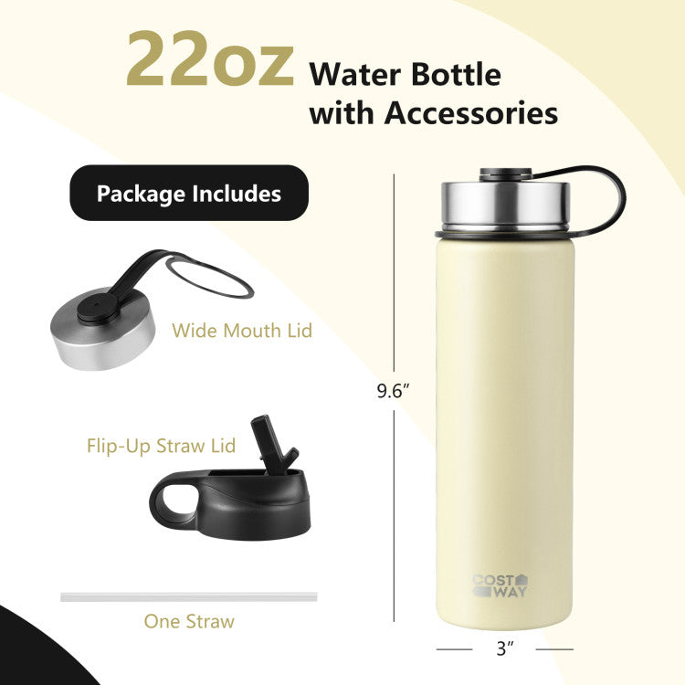 This 22 oz insulated water bottle with a convenient handle is an excellent choice to take along for various activities, such as camping, hiking, cycling, or fishing.