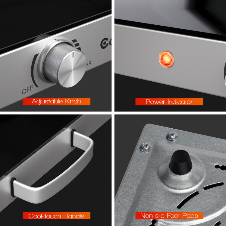 -Spacious glass top to place any heat-resistant cookware (plastic cookware excluded)