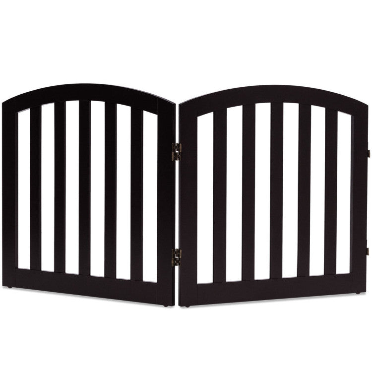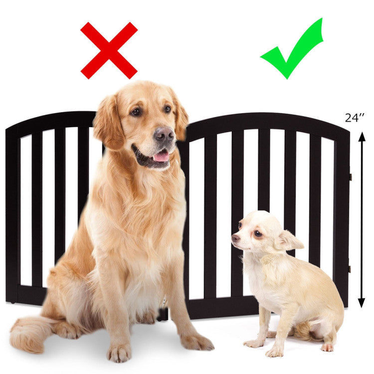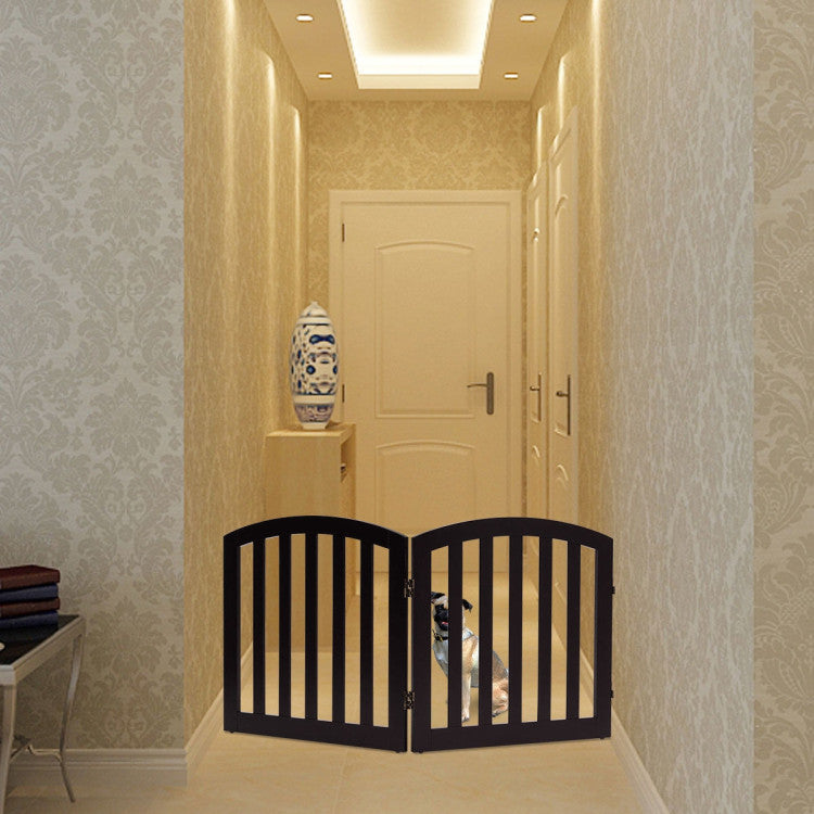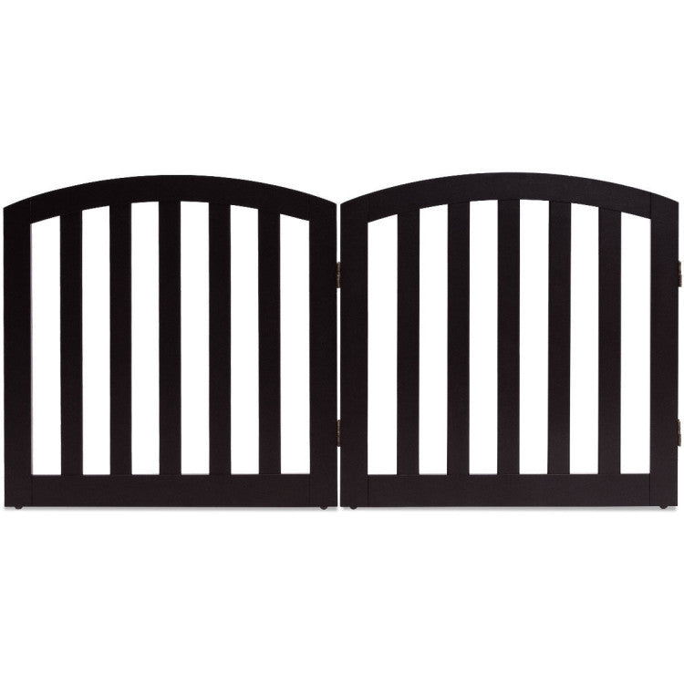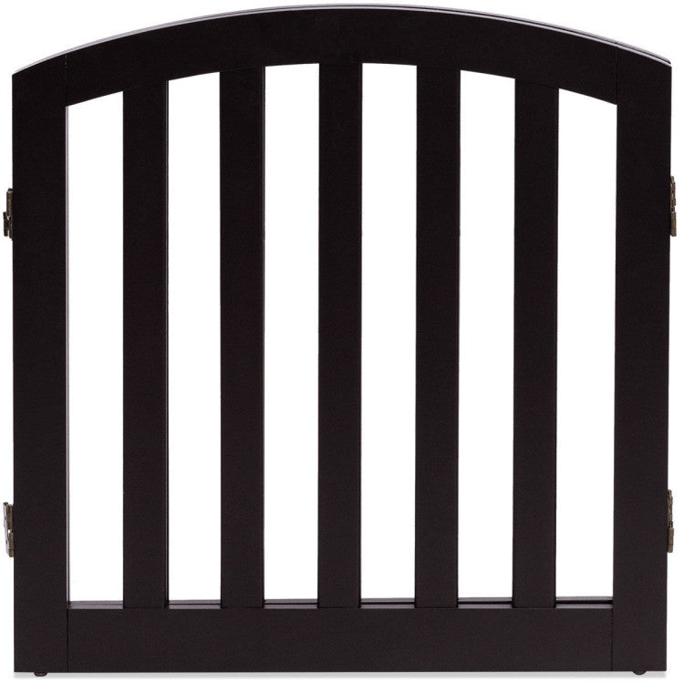 The 24" height gate allows adults to step over the barrier if needed. The fence is designed with 2 panels secured together with sturdy hinges. You can increase the length and span of your dog fence with our 2 paneled extension kit. It is great for blocking hallways, stairways, doors, bedrooms, and entryways. Hinges rotate 360° for unlimited configurations, you can customize it to your need. Constructed from sturdy wooden construction and sealed with a special material finish, the fence gives great stability and ensures sturdiness, keeping your pets securely confined while you are away.