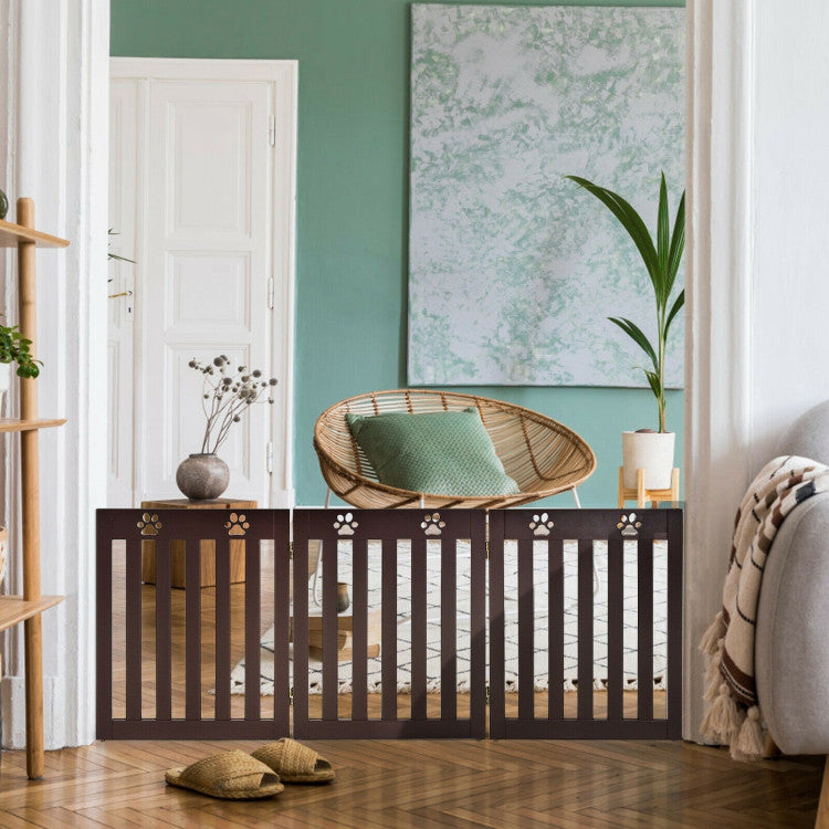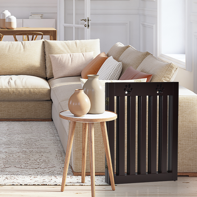 Considering the safety of your four-legged friend, we prepared this wooden freestanding pet gate for your puppy!