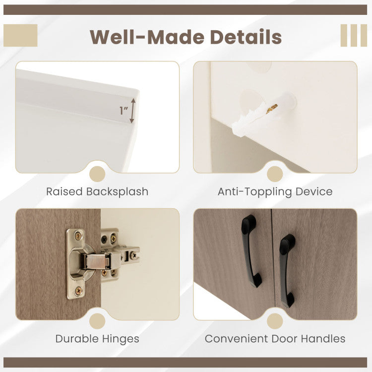 -Ample storage space, including a 2-door cabinet and an open shelf