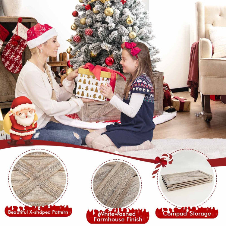 This wooden Christmas tree collar box provides a large space to enclose most Christmas trees, and it is suitable for the Christmas tree stand with a diameter that is less than 37". Besides, instead of using fragile plastic, this tree collar box adopts 100% natural wood, which is sturdy and durable enough, ensuring many-year reuse. And in contrast to troublesome screw and hinge connections, this tree collar box adopts hook and loop fasteners, which are quite easy to assemble and disassemble. The rustic yet sophisticated appearance makes this tree collar fit any style, whether it's modern, farmhouse, or traditional, it's sure to impress. It can also be a perfect Christmas gift for family and friends!