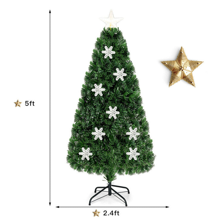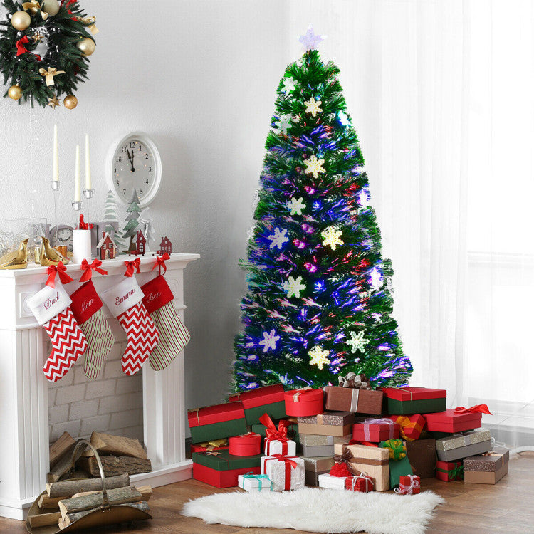 This Christmas tree is perfect for adding holiday joy to your home or office. The most outstanding feature is there are many luminescent optical fiber leaves, making it even more dazzling. The dense PVC needles appear fresh-cut. The included plastic base is sturdy and holds the tree up well. The tree is easy to assembly and storage.