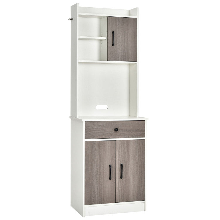 It is made of high-quality materials with superior workmanship, which can withstand years of use. The spacious countertop is cleverly designed to hold your microwave, coffee maker and other appliances. Meanwhile, the cable management hole effectively avoids a tangled mess of wires. Additionally, the 5-position adjustable shelves are designed to accommodate items in different sizes. The smooth slides, metal handles and knob also bring you much convenience to fetch items with ease. Hope our kitchen pantry makes your life much easier and happier.