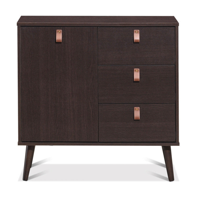 Featuring three drawers and a large cabinet with an adjustable shelf, the storage cabinet meets your different needs for storing and makes a good use of space. Crafted of thickened engineered wood with premium durability, the storage cabinet will spend many years of time with you. Whether be used as a display cabinet in your living room, or act as a console table in the study, the 3-drawer chest will be an eye-catching addition for its elegant appearance. Come and buy the storage cabinet quickly and I believe it's a perfect addition for your room!