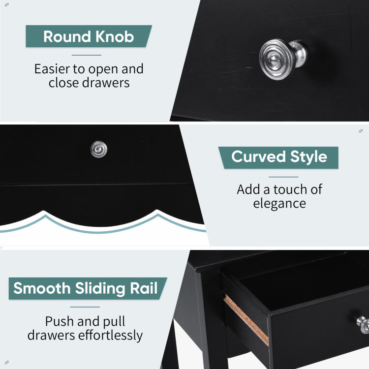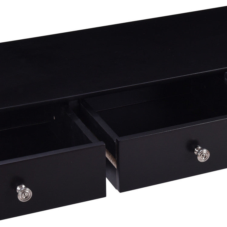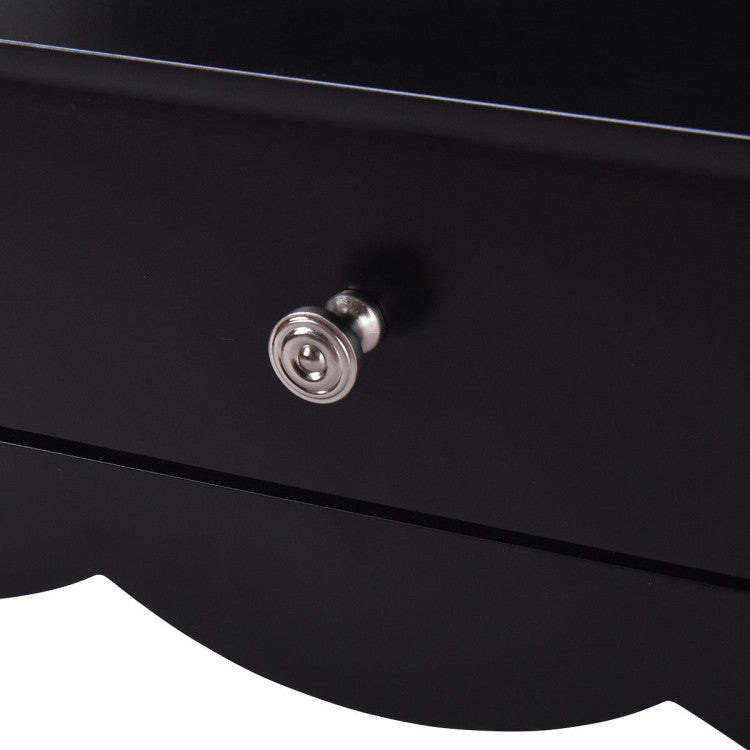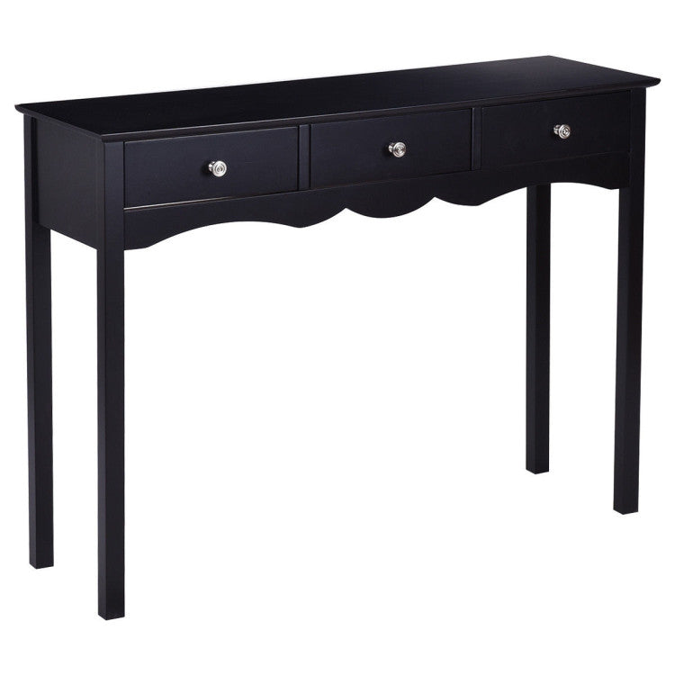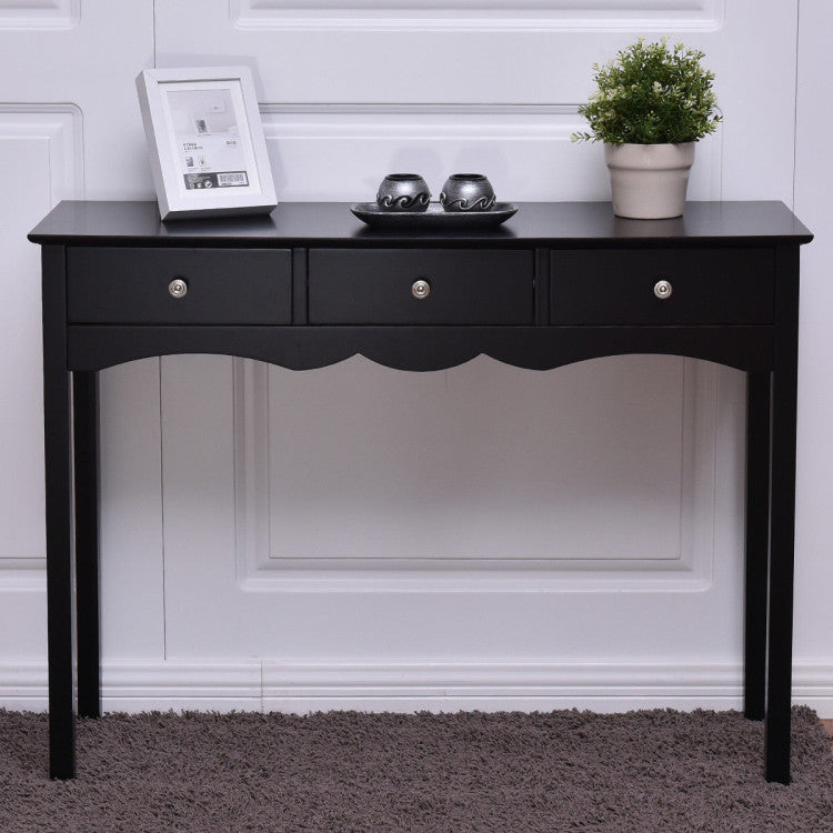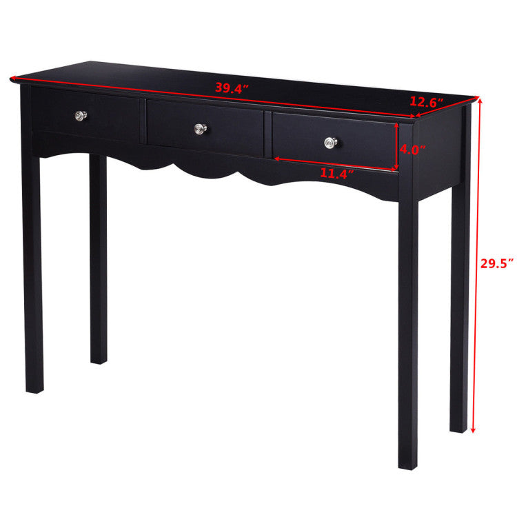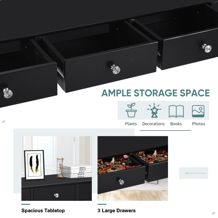 Constructed of high quality, non-toxic MDF material, this table is sturdy and reliable. Three slide-out drawers provide convenient space for placing small items. The classic black finish on the contemporary furniture will surely coordinate well with any room decor.