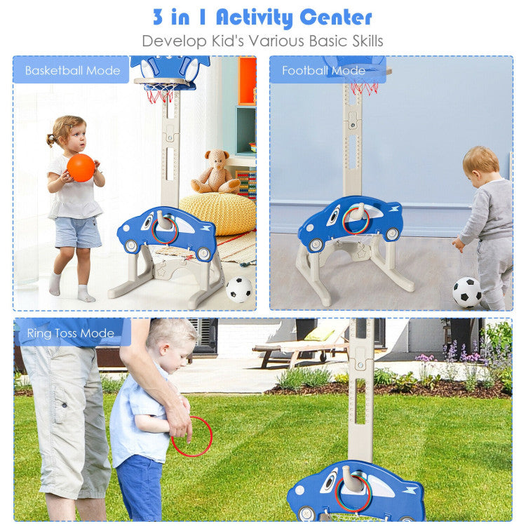 3 in 1 rocket basketball set combines basketball game, football game, and ring toss game to bring extra fun for kids while keeping them healthy.