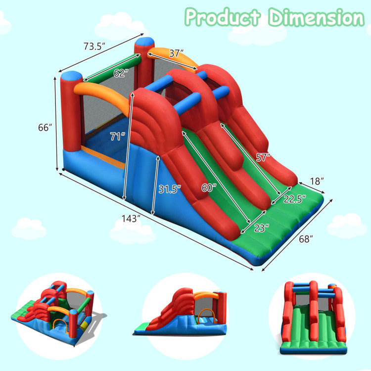 This inflatable double slide bounce house can create happy memories for your kids in childhood!