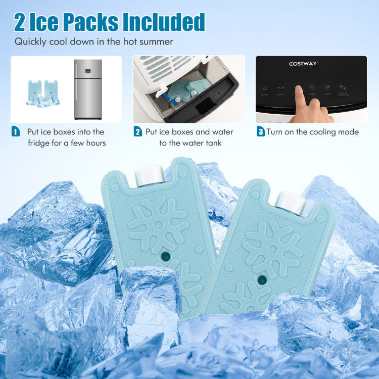 It can make the air cooler and achieve effective humidification and ventilation. Besides, adding ice boxes and water to the water tank can bring extra coolness instantly. 3 wind modes, 5 speeds and 1-9H timer allow you to customize airflow as you like. 80°wide oscillation ensures everyone in the room can enjoy the cool wind. In addition, the large capacity water tank with visible water level avoids the inconvenience caused by frequent water filling. This energy-efficient air cooling fan with quiet operation won't disturb your sleeping or working and can save plenty of energy costs. The smart touch screen, LED display and handy remote control make it easy to operate. And you can move the air cooler to any place with 4 universal wheels and a built-in handle.